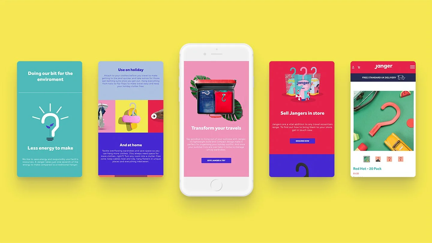 Janger is a hanger brand that has conquered the B2B market with millions of units across leading U.K. retailers. In 2019 they made the decision to tackle the B2C market. I concepted and designed how their new B2C branding would be implemented across their website design, social assets, animations, product shoots and business collateral.